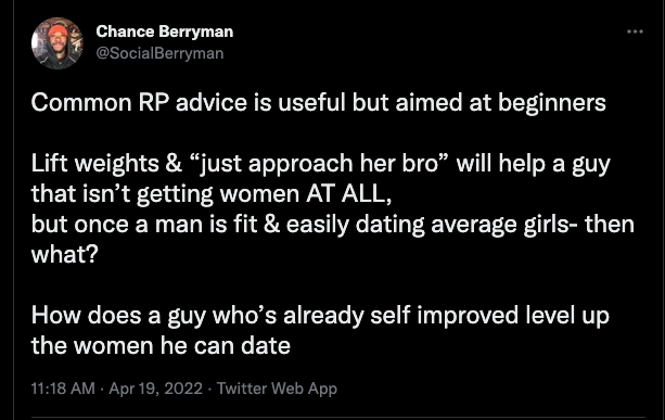 As much as I hate to kill a sacred calf of our community, it's pure fantasy to believe that any human man could self-improve enough to get “any woman” he wants.