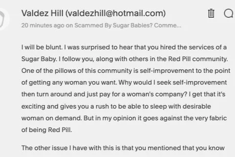 Valdez’s reply on my latest article, “Scammed By Sugar Babies?”, is thoughtful and earnest.