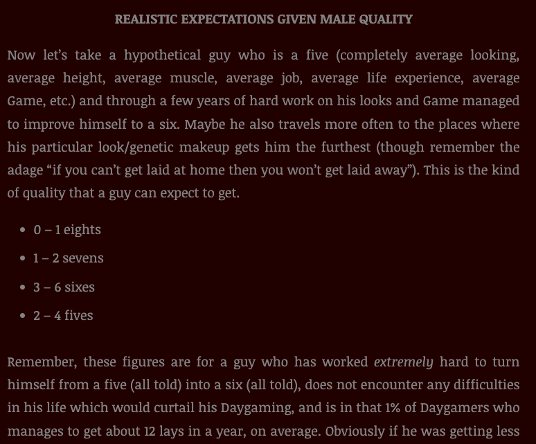 Since we all know that women only date up, I will STILL only ever be able to sleep with women 1-2 points BELOW my SMV.